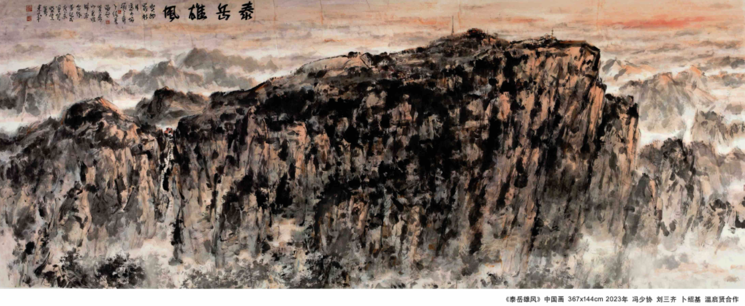 大型山水画作品《泰岳雄风》顺利完成,体现了画家希望以传统优秀文化思想为引领,以专业美术理论为支撑,对如何继承和借鉴传统中国山水画笔墨特点、创作模式的思考。几位画家还表示,希望能有更多机会走近祖国名山大川,创作出更多新的主题性山水画作品。(朱绍杰)