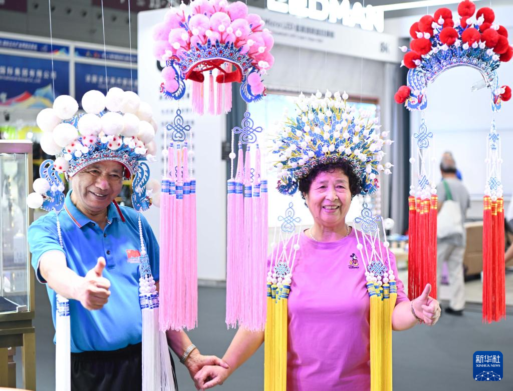 5月23日,参观者在第二十届文博会福建馆体验簪花。新华社记者 毛思倩 摄