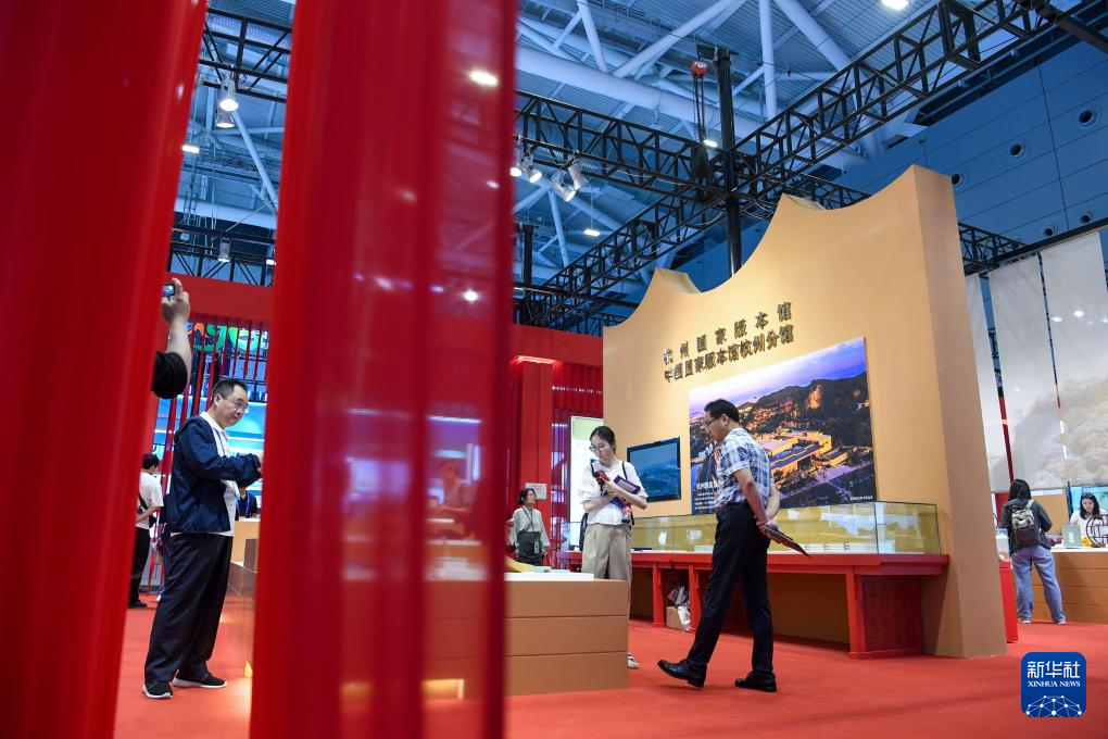 5月23日,观众在第二十届文博会现场观看中国国家版本馆展品。新华社记者 梁旭 摄