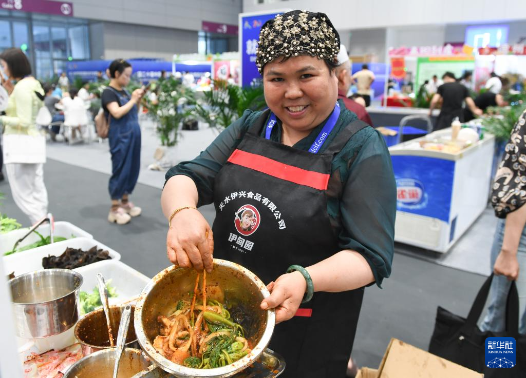 5月23日,来自甘肃天水的参展商在第二十届文博会现场展示天水麻辣烫。新华社记者 毛思倩 摄