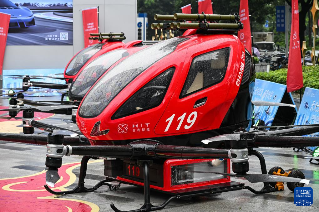 广州低空航展上展示的亿航智能EH216系列中的高层建筑消防无人机(6月3日摄)。新华社记者 刘大伟 摄
