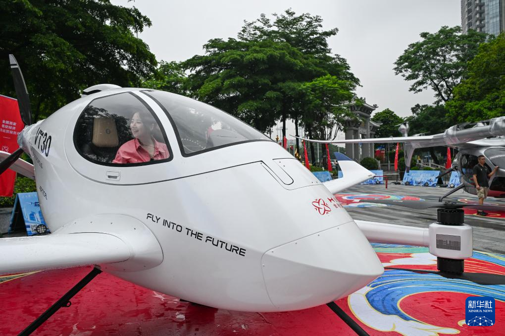 6月3日,观众在广州低空航展上体验亿航智能VT-30无人驾驶载人航空器座舱。新华社记者 刘大伟 摄