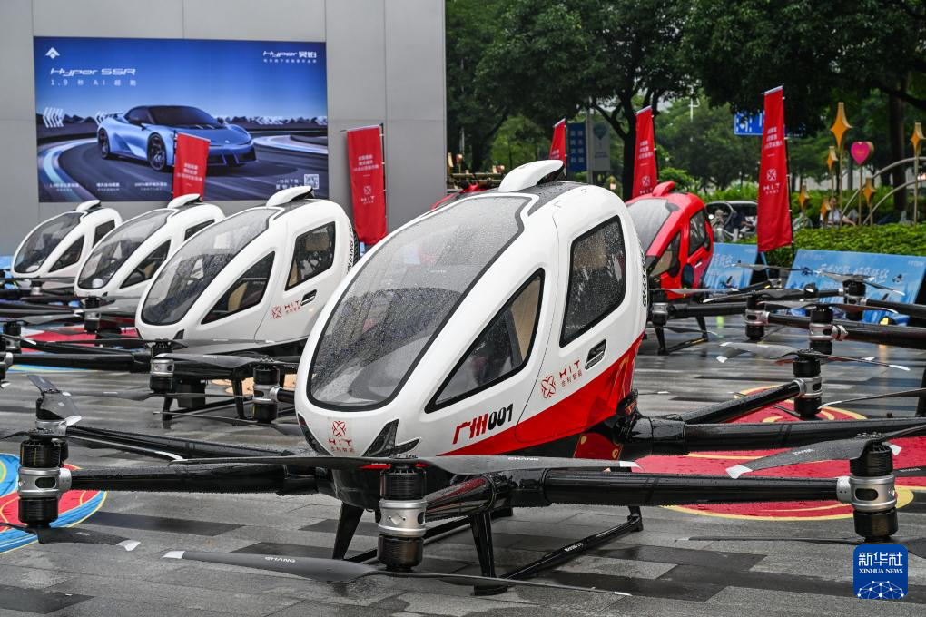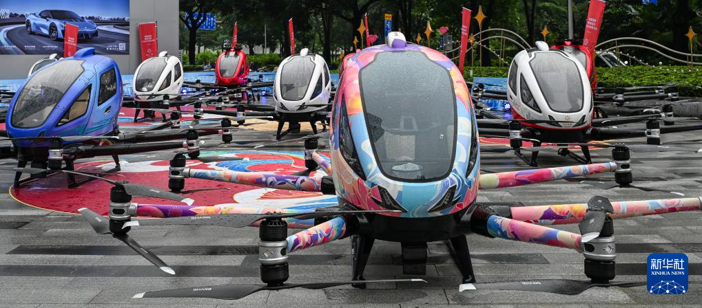 广州低空航展上展示的亿航智能EH216系列产品(6月3日摄)。新华社记者 刘大伟 摄