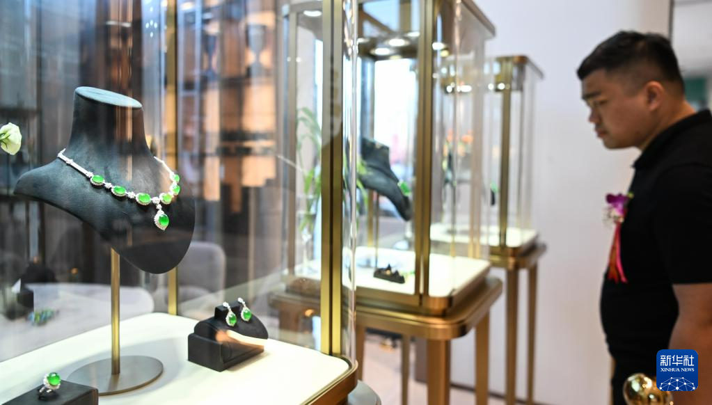 这是9月27日在揭阳百分玉器广场拍摄的翡翠商家摊位。