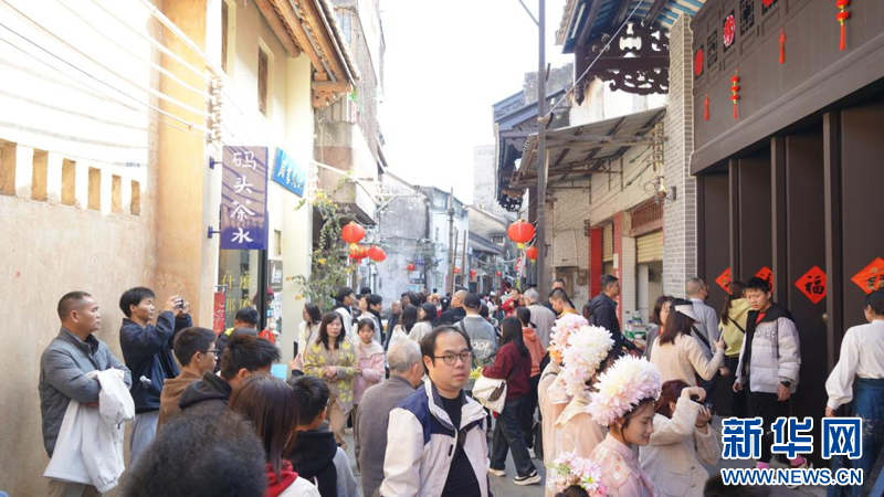 新春佳节期间,游客漫步于湛江赤坎老街,观赏特色展览,在这浓厚的“烟火气”中领略古埠新韵。近年来,湛江赤坎释放消费潜力,以丰富多彩的节日活动迎接全国各地的游客,带动了周边文化与旅游产业的协同发展,为经济注入强劲动力。