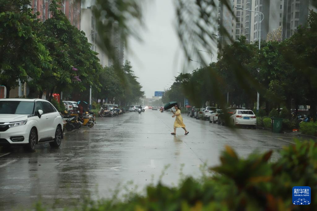 9月8日,一名市民在广东阳江市区撑伞行进。