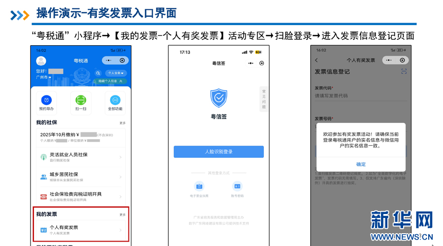 新华网广州11月29日电(卢鉴)新华网从国家税务总局广东省税务局获悉,2025年12月1日至2026年3月31日期间,个人消费者在广东(不含深圳市)的零售、住宿、餐饮等行业消费满100元并开具普通发票,将可参与发票抽奖活动,单张发票最高奖金200元。