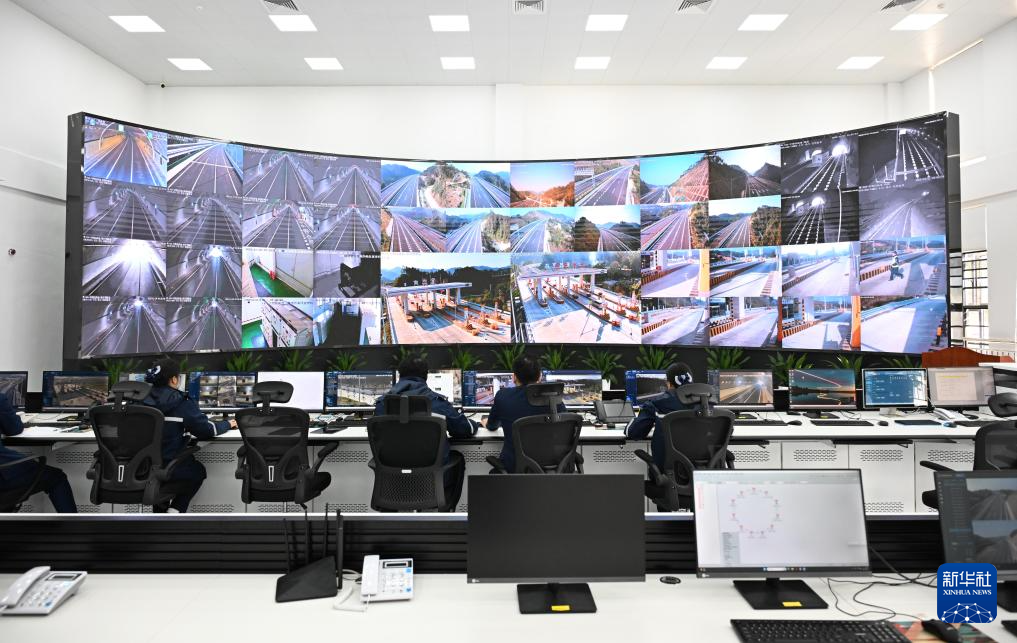 这是12月28日在广东阳春市拍摄的阳信高速圭岗管理中心监控指挥中心。
