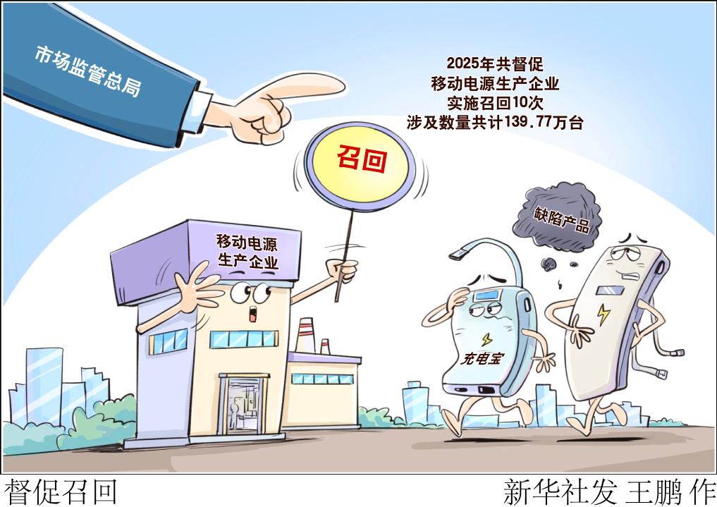 记者1月21日从市场监管总局新闻发布会上获悉,市场监管总局加强问题充电宝的缺陷召回工作,2025年共督促移动电源生产企业实施召回10次,涉及数量共计139.77万台。