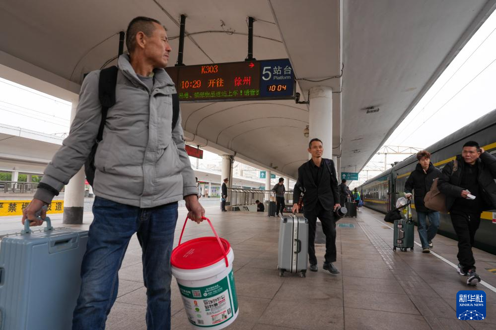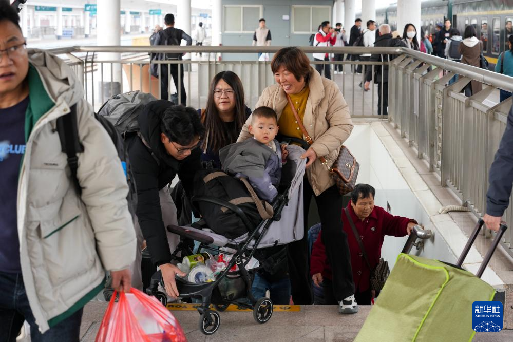 1月25日,在广州火车站,旅客准备登上K303次列车。